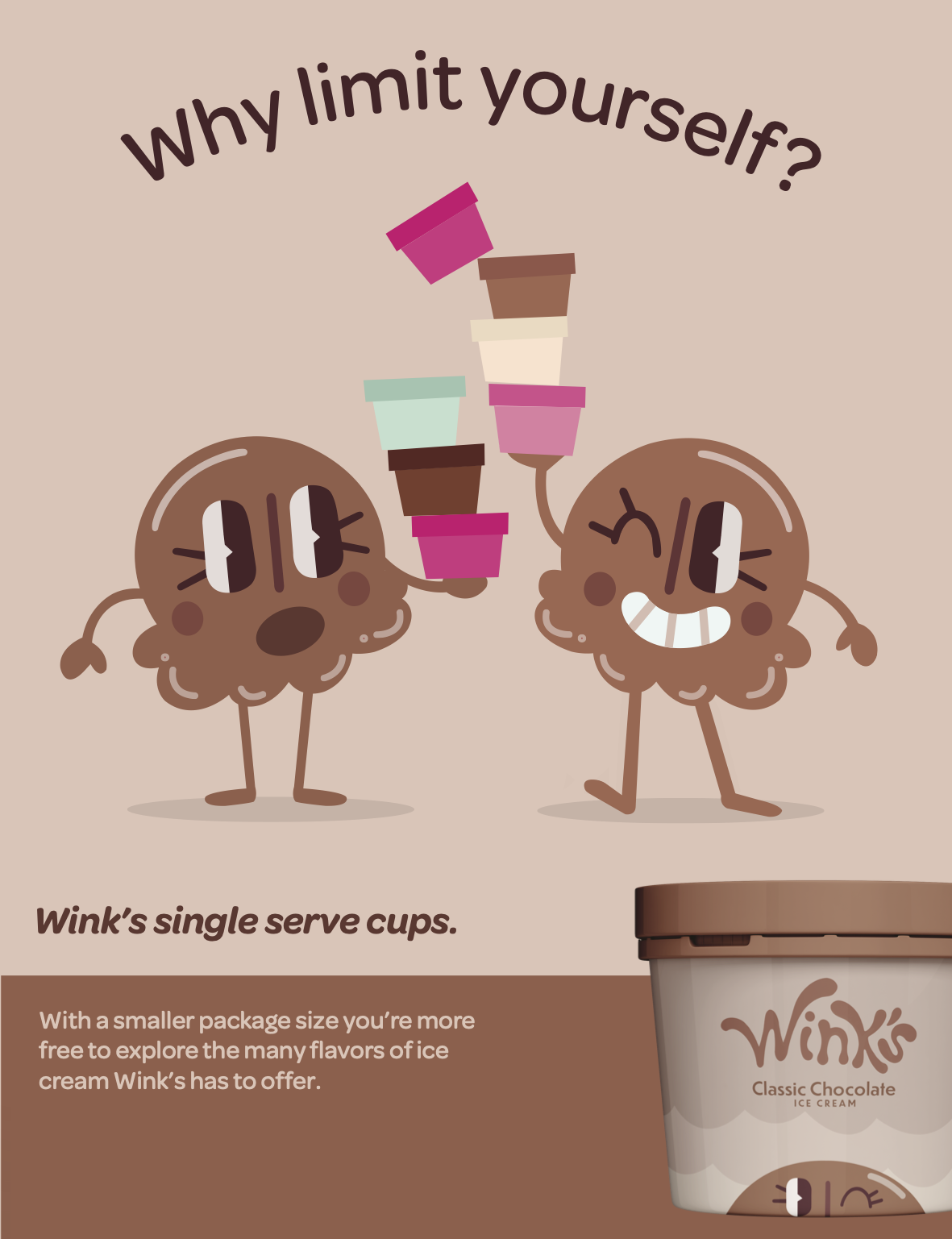 Wink’s Ice Cream Branding HomeMy WorkContact Packaging Magazine Advertisements Brand Stationery Logo Ideation